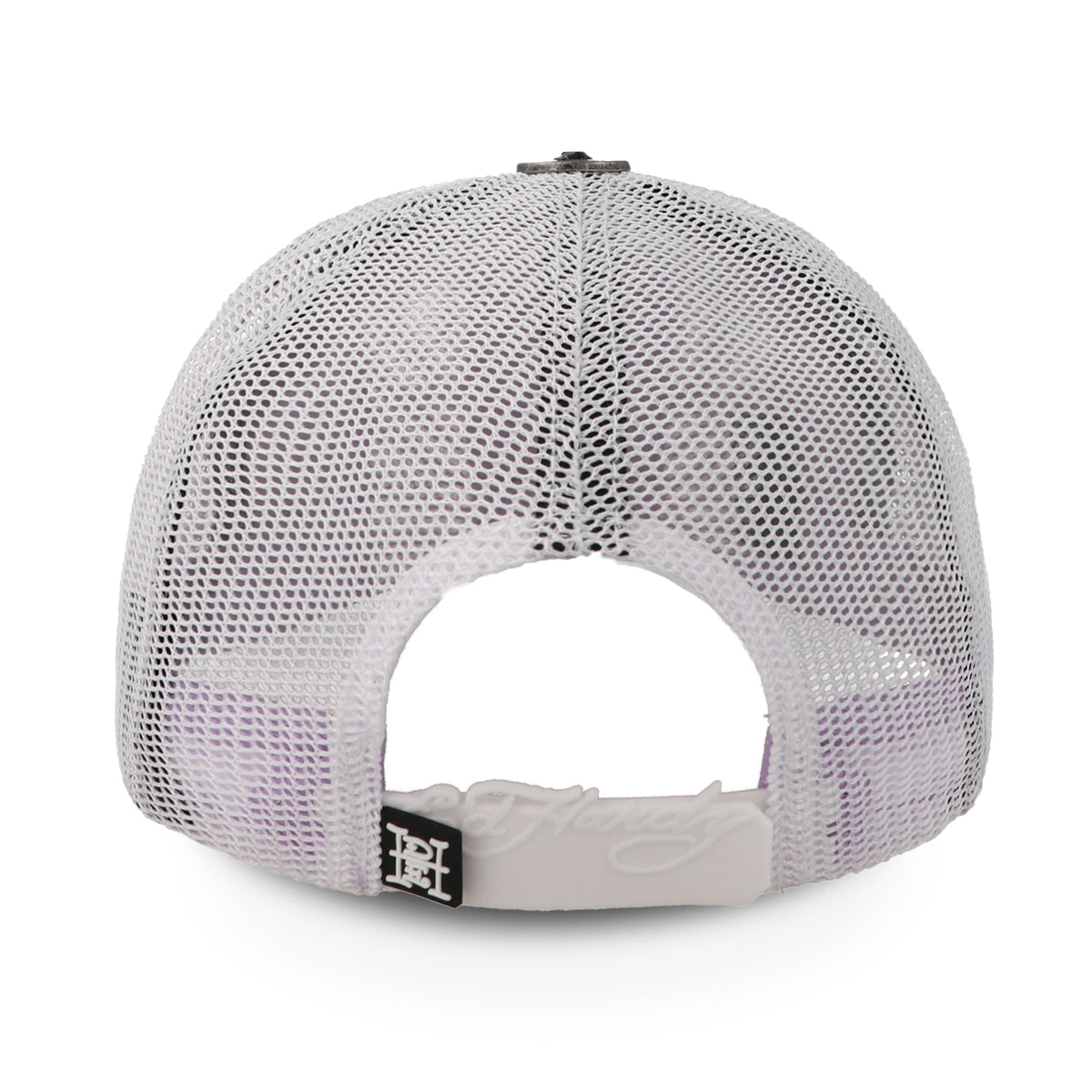 Fuerza salvaje con explosión de color. Esta gorra Ed Hardy presenta un tigre bordado rodeado de flores en una composición intensa y artística. Su base en tono lila con malla blanca tipo trucker crea un contraste único, ideal para un look atrevido y sin reglas.